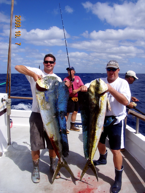 Hey anglers, What a difference a week makes. We are finding some tough fishing all the way around. We’ve got 15-18 knots of wind and a little swell and the yellowfin tuna aren’t biting as well as we’ve seen before. We landed around 30 good tuna and released a bunch of small ones. We had a little action on 12 to 15 pound yellowtail and also a few dorado. Only one wahoo made it aboard today. We are moving south to the 23-fathom spot with high hopes for wahoo tomorrow. Wish us luck, Capt Art