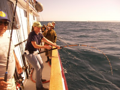 Hello anglers, We had another great day at Cedros island–really good fishing in the morning with a lull mid-morning. After lunch we spent some time along the kelp line and had pretty good calico bass fishing. After that we went back to the yellowtail area and caught a few more before leaving. We are headed north tonight and hoping for not too bad a ride. More tomorrow, Capt Art