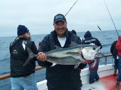 Hello anglers, We had a great day with good fishing until 4pm. About then, our school of bluefin tuna left us and that was pretty much the end of our day. Everyone had fun with steady action most of the day. We ended up with 95 bluefin tuna and 16 albacore. We are headed east to Cedros Island to give everyone a chance at some yellowtail. More tomorrow, Capt Art